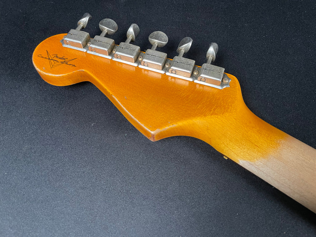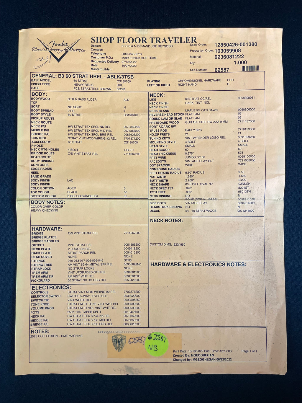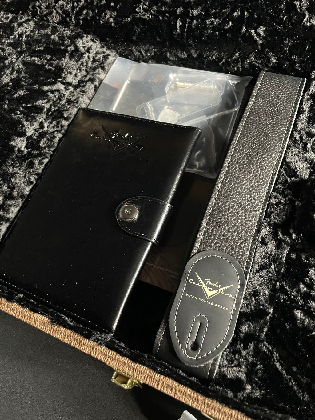 Other premium features include a three-ply mint green pickguard, five-way pickup switch, Custom Shop vintage synchronized tremolo bridge, vintage-style tuners, wing string tree with tall metal spacer, deluxe hardshell case, strap and certificate of authenticity.