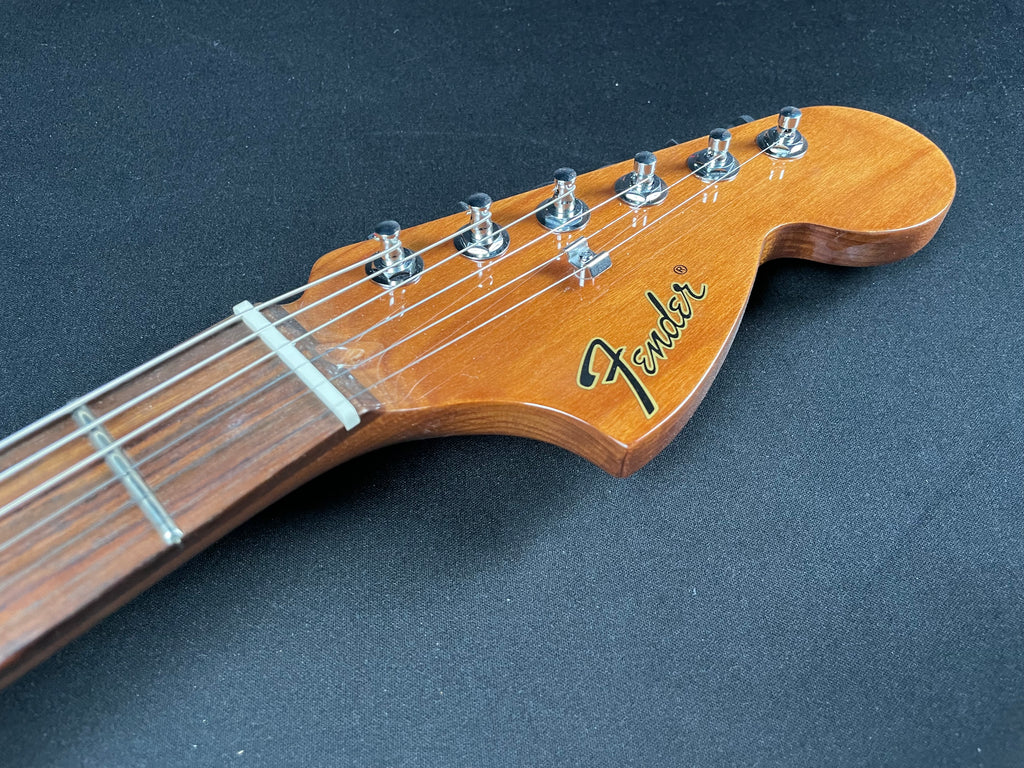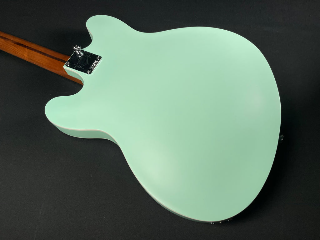 Designed with an offset semi-hollow body, the Tom DeLonge Starcaster boasts a Seymour Duncan SH-5 Duncan Custom humbucker for turbo-charged tone that’s perfect for chunky power chords and crunchy riffs. But it's not all about power — the streamlined control setup consisting of a single master volume combined with a treble bleed circuit preserves the guitar’s natural high-end, ensuring sparkly cleans and chime-y edge-of-breakup tones. The comfy modern "C" neck features medium jumbo frets on a 12"-radius rosewood fingerboard for a modern feel with superior playability. Other highlights include Fender locking tuners for rock-solid tuning stability and fully adjustable bridge with stop tailpiece for classic looks, superior setup adjustment and enhanced tuning stability. DeLonge’s original signature artwork is featured on the back of the headstock and custom crafted neck plate.