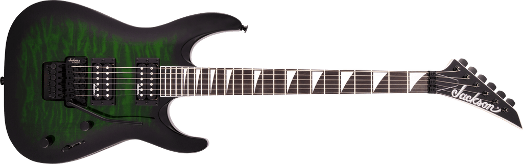 Powered by direct mount dual Jackson high-output humbucking pickups with ceramic magnets, the JS32Q DKA also features a three-way blade, single volume and tone controls, Jackson-branded Floyd Rose® licensed double-locking tremolo bridge, standard strap buttons and sealed die-cast tuners.